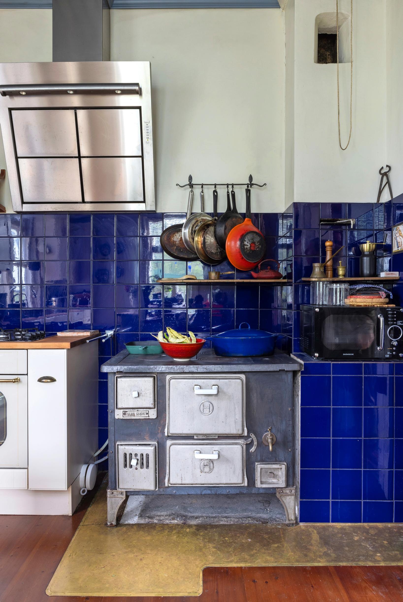 Renovating the house and yard didn’t happen overnight. In the end, the couple spent two years living amid the renovations. The kitchen was excavated down to the ground, and the entire drainage system was replaced before they even started on the garden. Inside, they tackled one room at a time. Some of the floors were covered with vinyl, and the walls bore faded 1970s wallpaper. Sisko’s approach to restoring the house was driven by her love for deep, dark hues, art, and antiques.