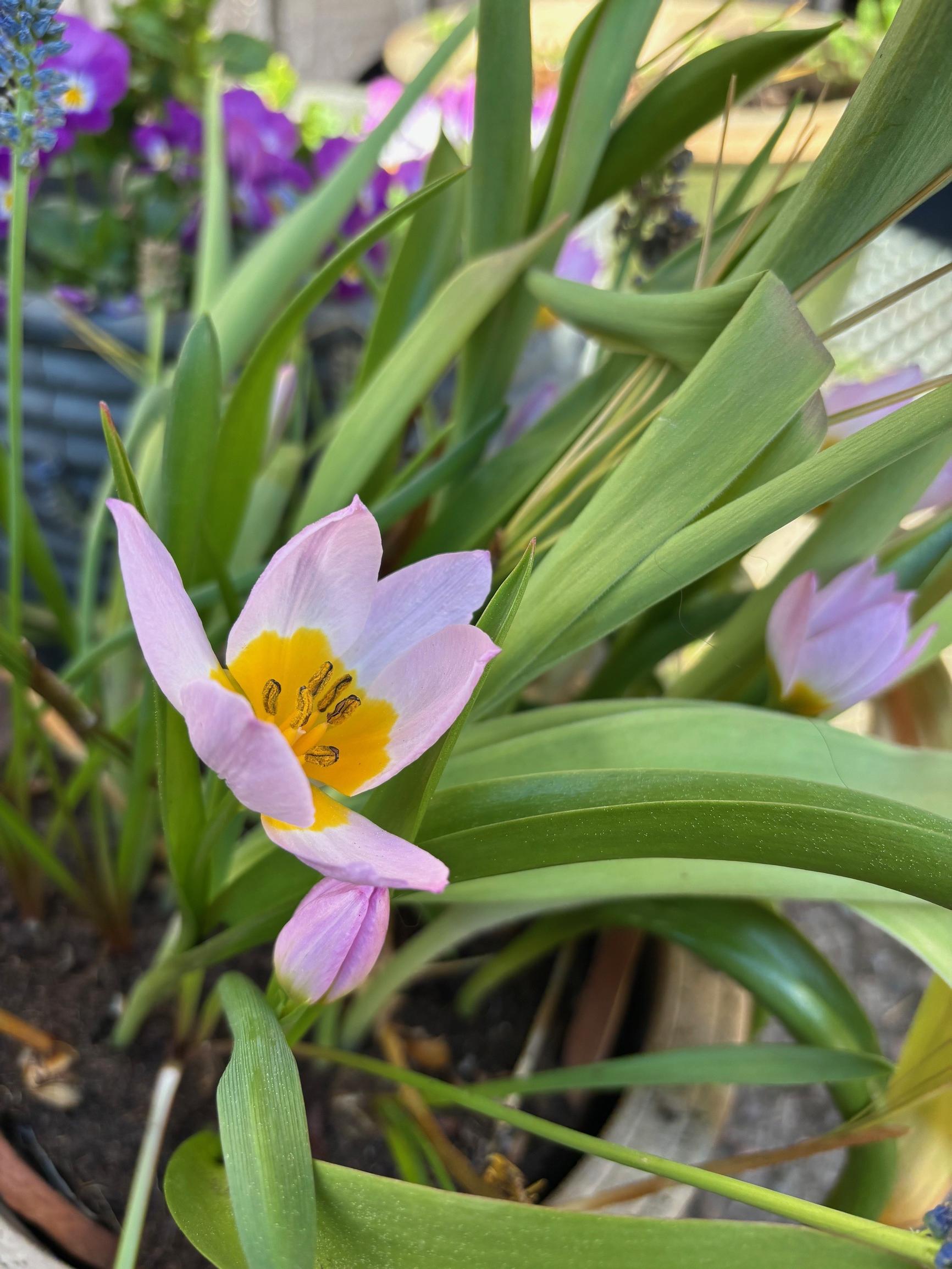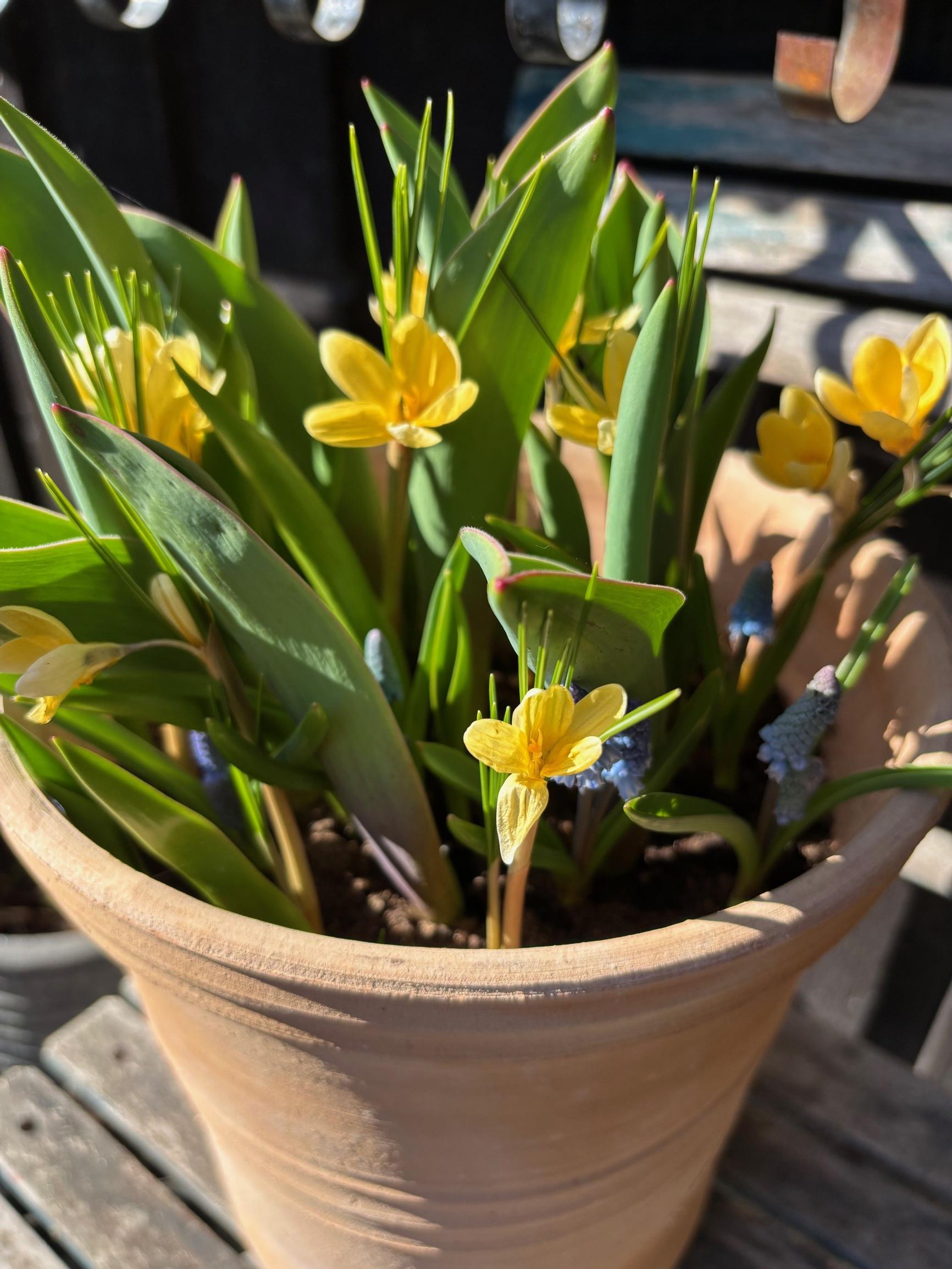 - Be picky about which species and varieties go into your containers if you want them to delight you while the rest of your garden is still asleep. In this test, we picked bulbs fairly randomly, and they didn’t bloom earlier than ones planted in the ground (apart from the saffron crocuses). Early small bulbs—like striped squill, iris reticulata, and crocuses—and early tulip varieties, like the botanical tulip “Ice Stick,” might make great pot choices.