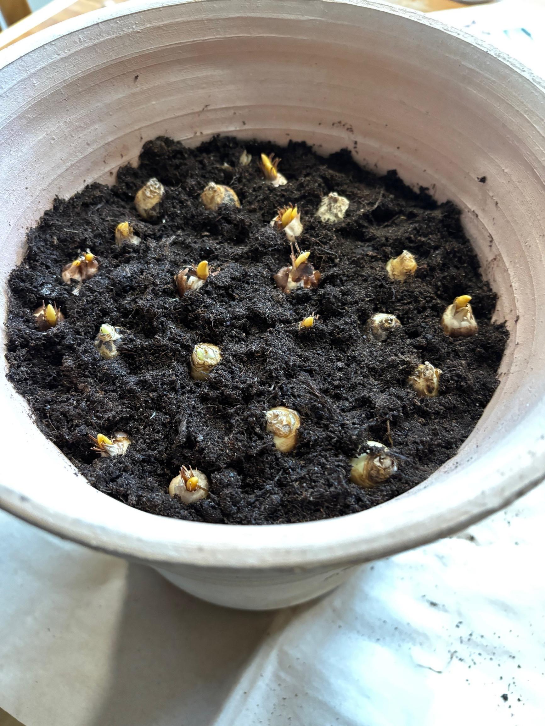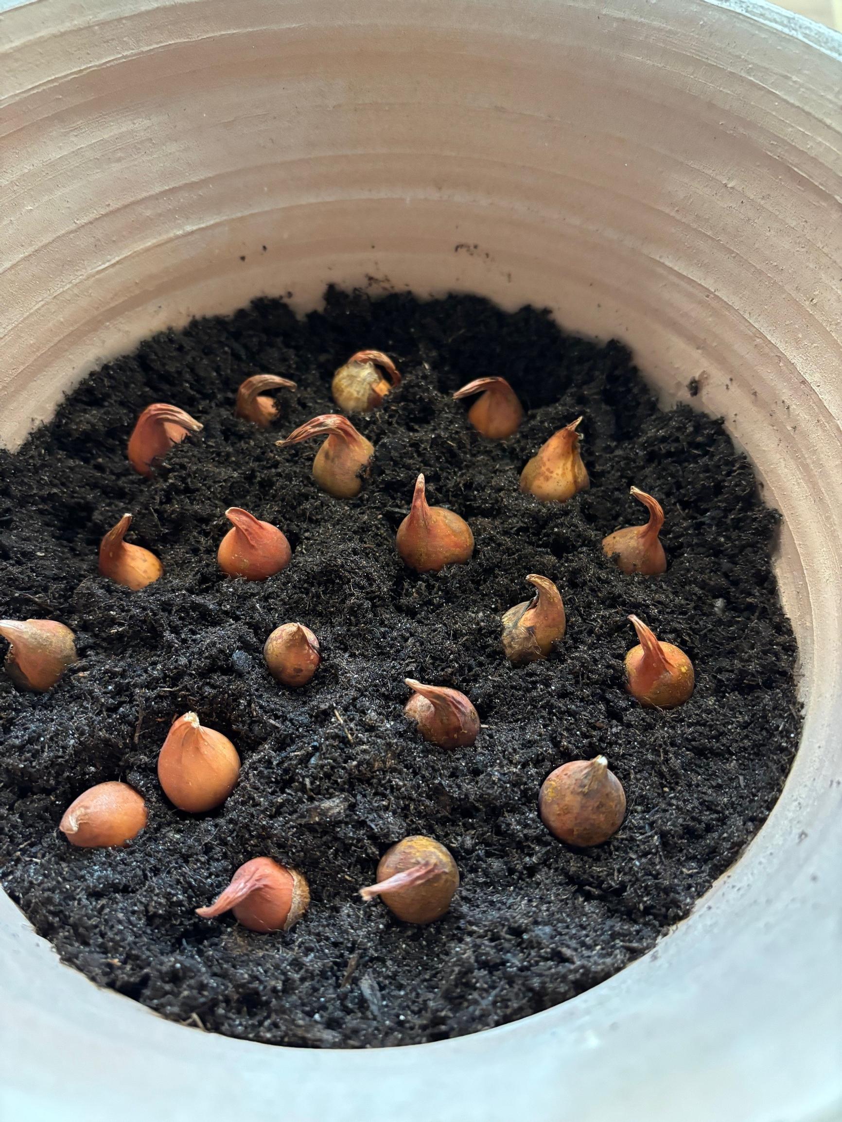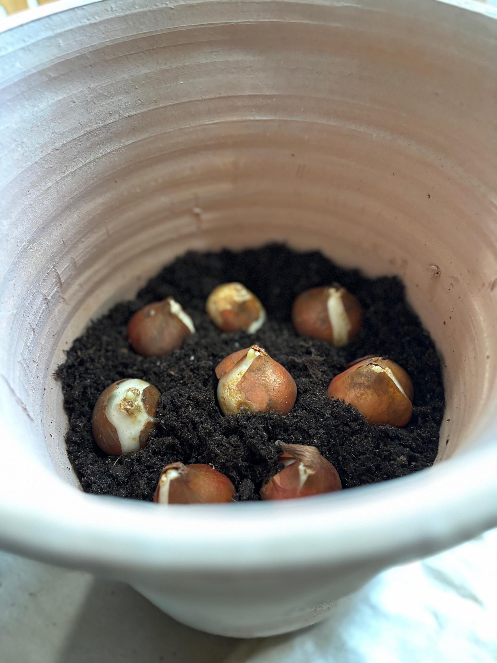 - We noticed that if a storage option is available, it might be better to plant bulbs later, around Christmas, so they don’t start growing too soon indoors.