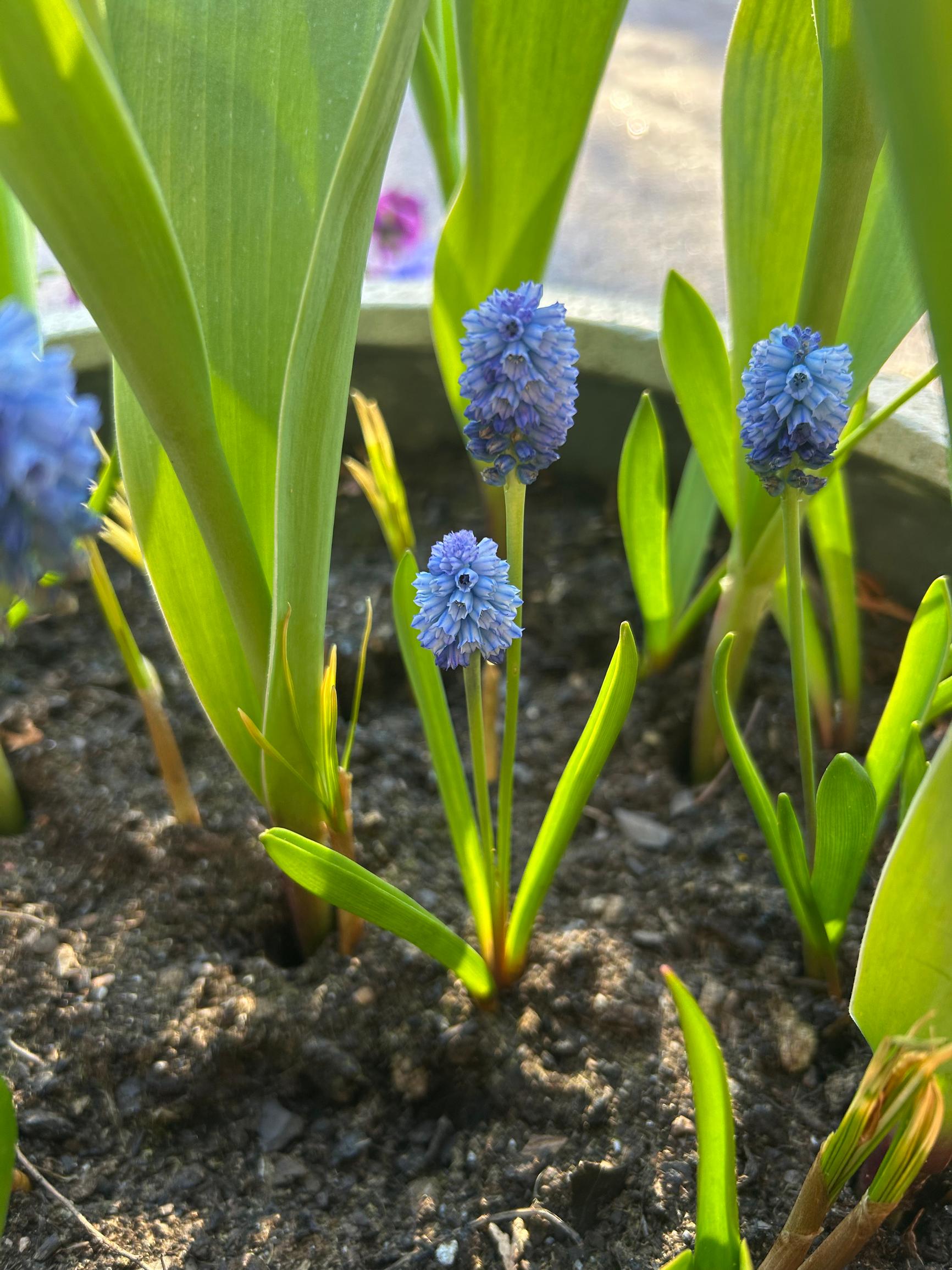 - All three pots seemed a bit sparse. We could have stuffed a lot more small bulbs—like grape hyacinths and crocuses—into them.