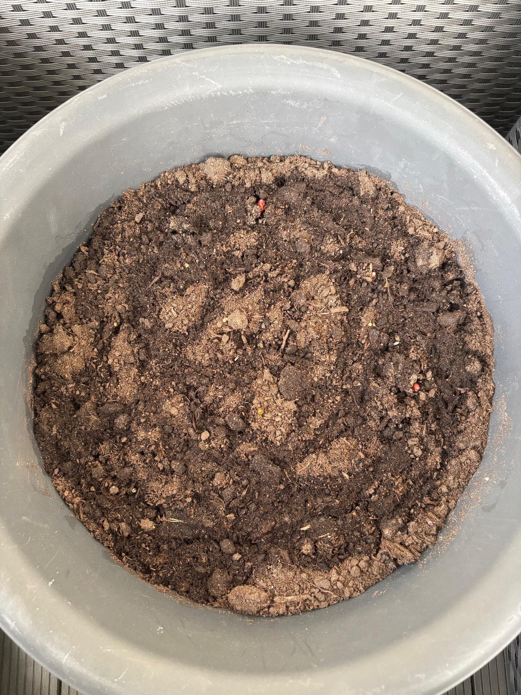 The pots weren’t identical, but each gardener used a fairly large container. The planting was watered lightly (enough to moisten, not soak).