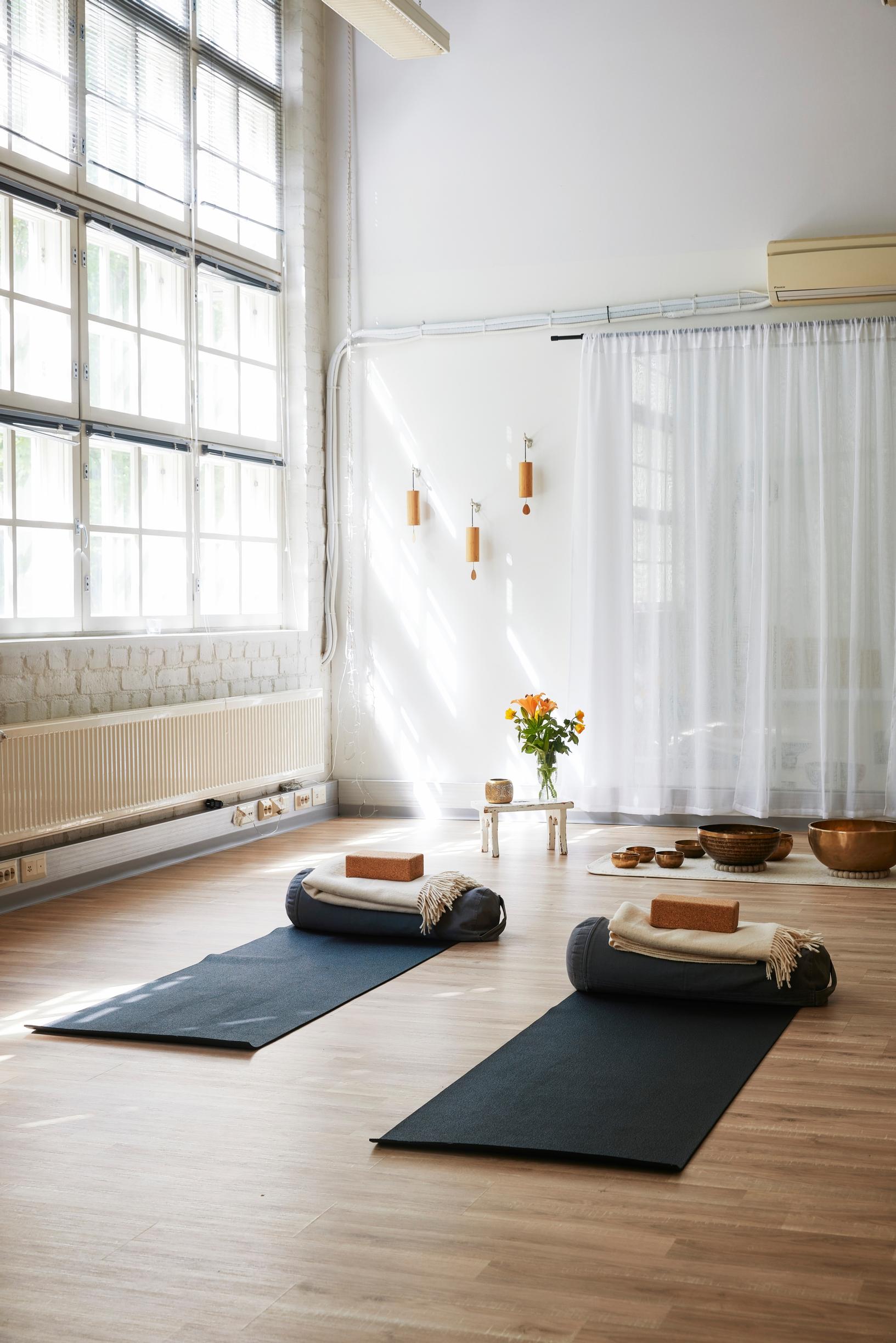 Many yoga studios, spas, and wellness centers are designed as soothing environments, where colors, materials, and lighting enhance well-being. Gather interior design ideas from them for your own sanctuary at home. This yoga studio sits in the old foundry area of Karkkila [in Finnish].