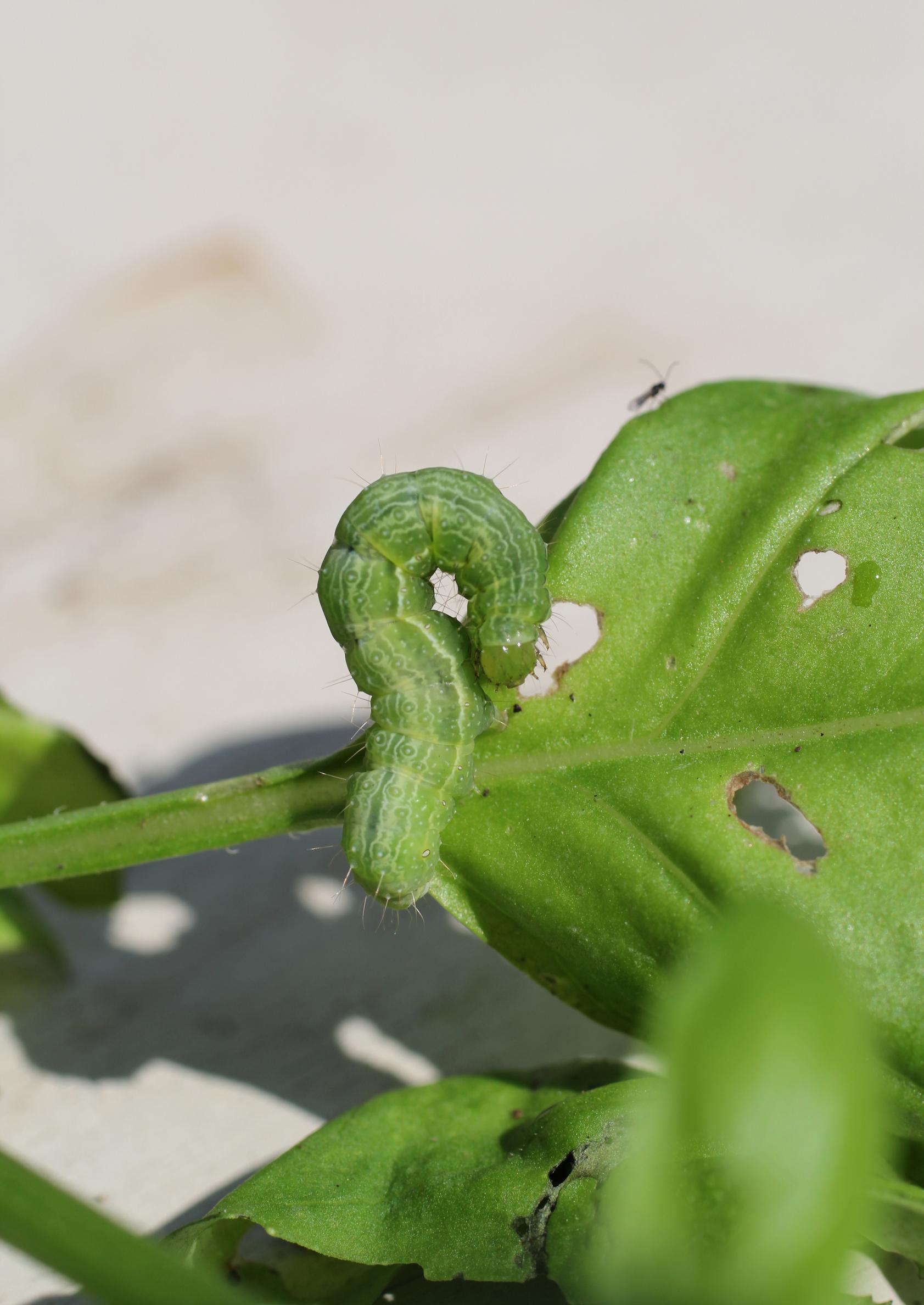 Shore garden moths overwinter as pupae in the greenhouse. Hand-picking the caterpillars, removing plant debris after harvesting, thoroughly cleaning the greenhouse, and replacing the growing medium if necessary can help control overwintering moths. The bright-line brown-eye moth may also enter the greenhouse from outside.
