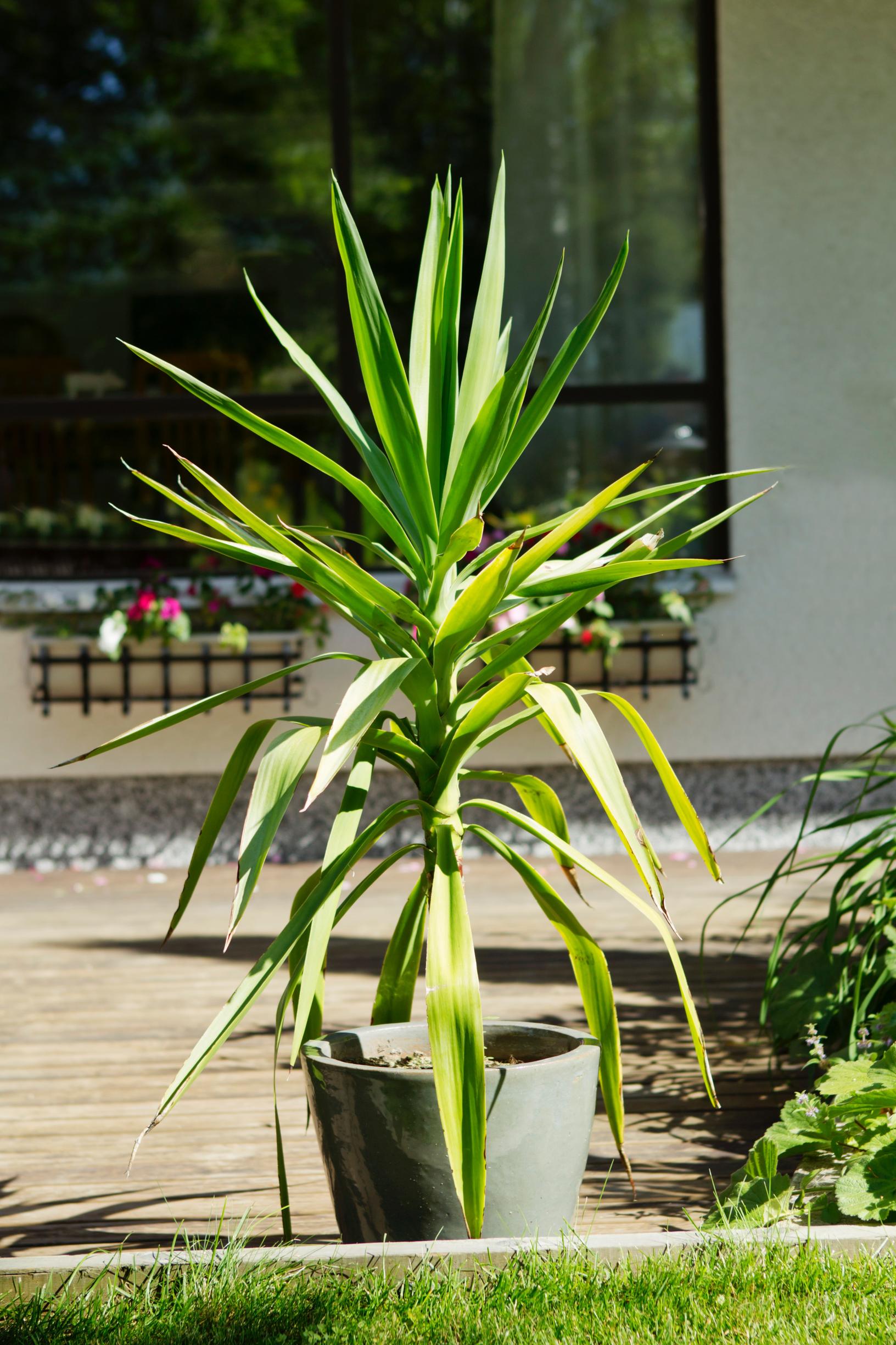 A yucca palm doesn’t need to be repotted every year—only as needed. It generally does well in a relatively small pot.